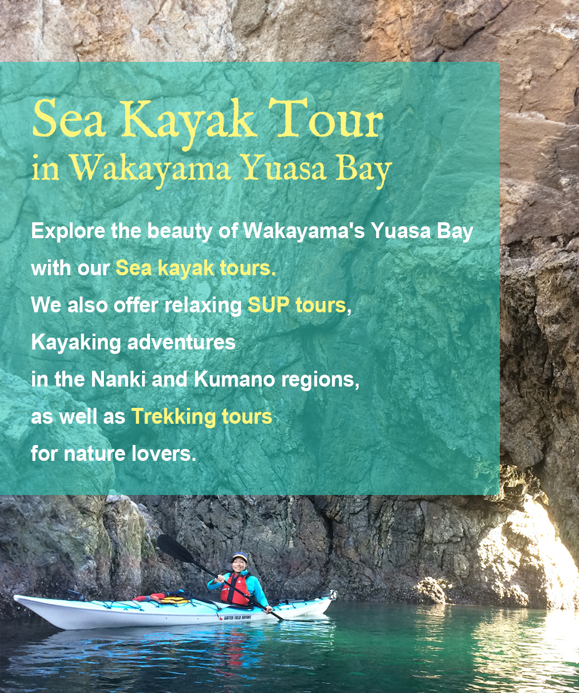 We specialize in outdoor trips in Wakayama, with a focus on kayaking because it uniquely allows you to feel the ancient pulse of the Earth and establish a deep connection with Nature.